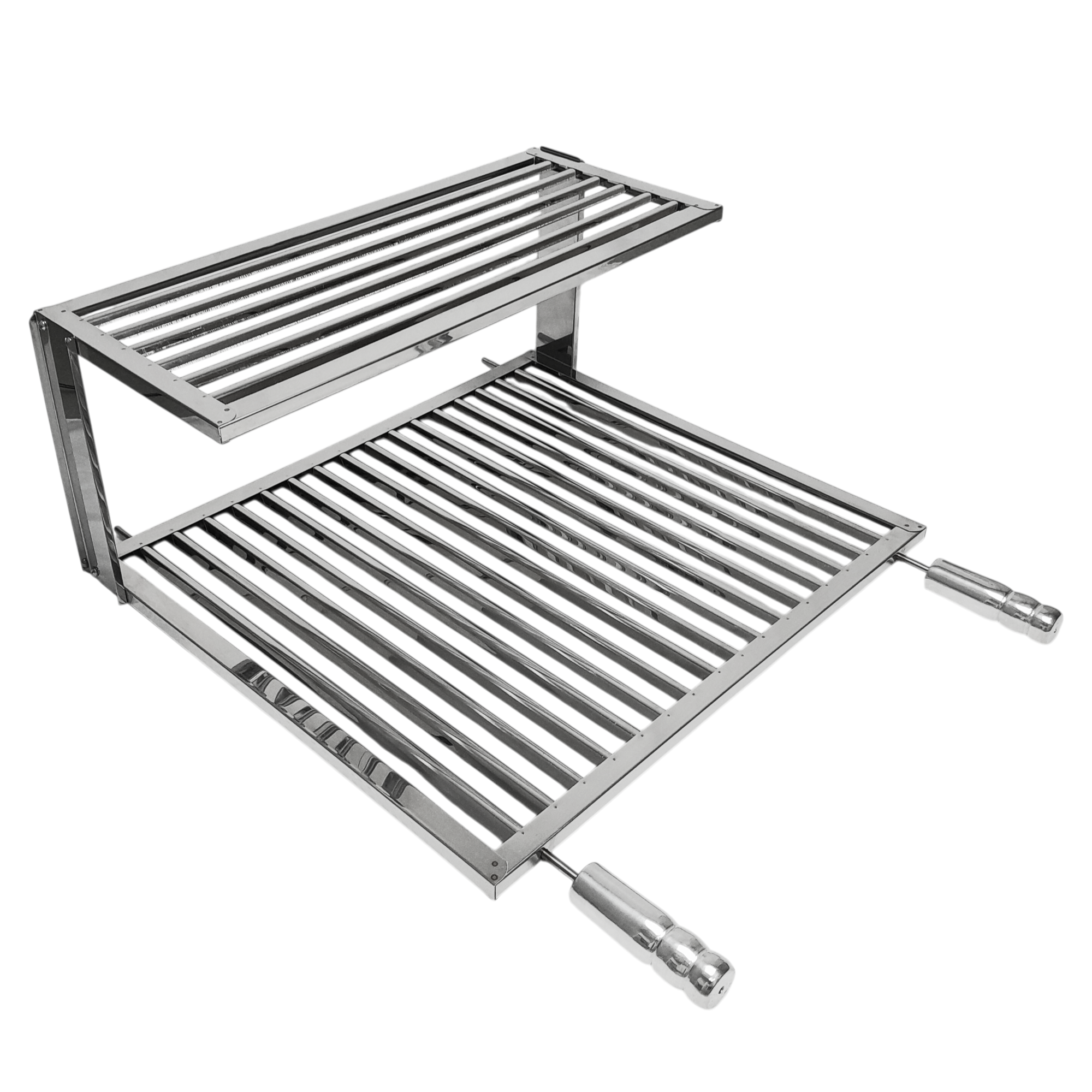 Seu descanso integrado é fabricado no mesmo padrão da grelha uruguaia, garantindo design moderno e sofisticado, além de facilitar a limpeza e o manuseio durante o preparo.